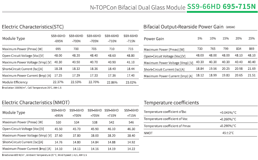 | Module efficiency (STC) | approximately 22.53% with 700 Wp variant |