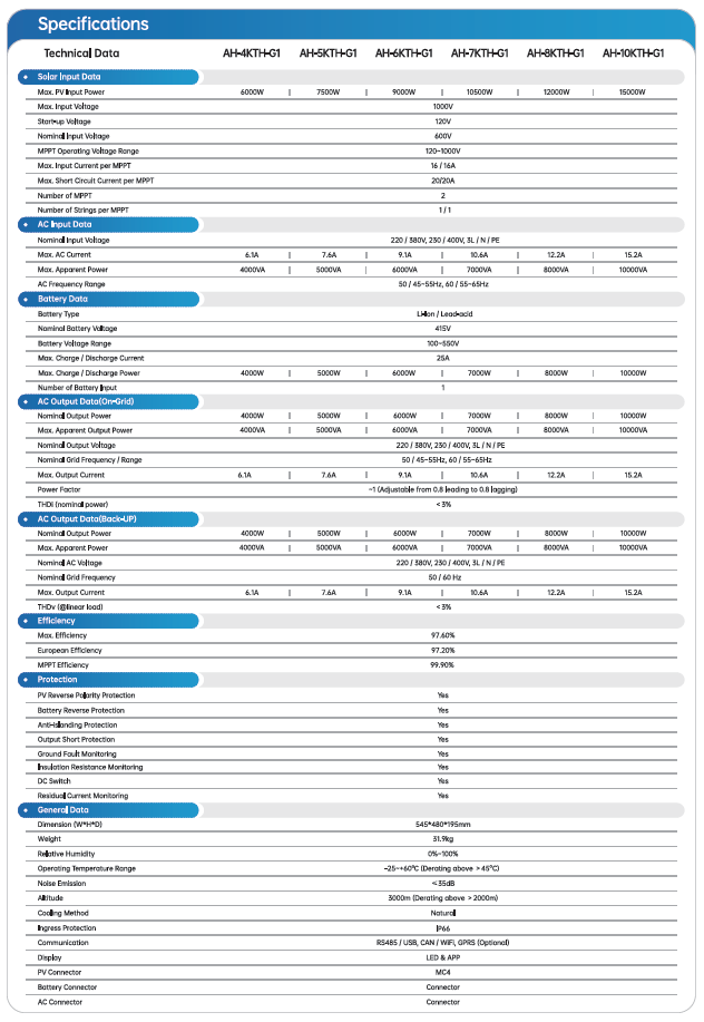 AOHAI Hybride HV 8kW AH-8KTH-G2 3Ph