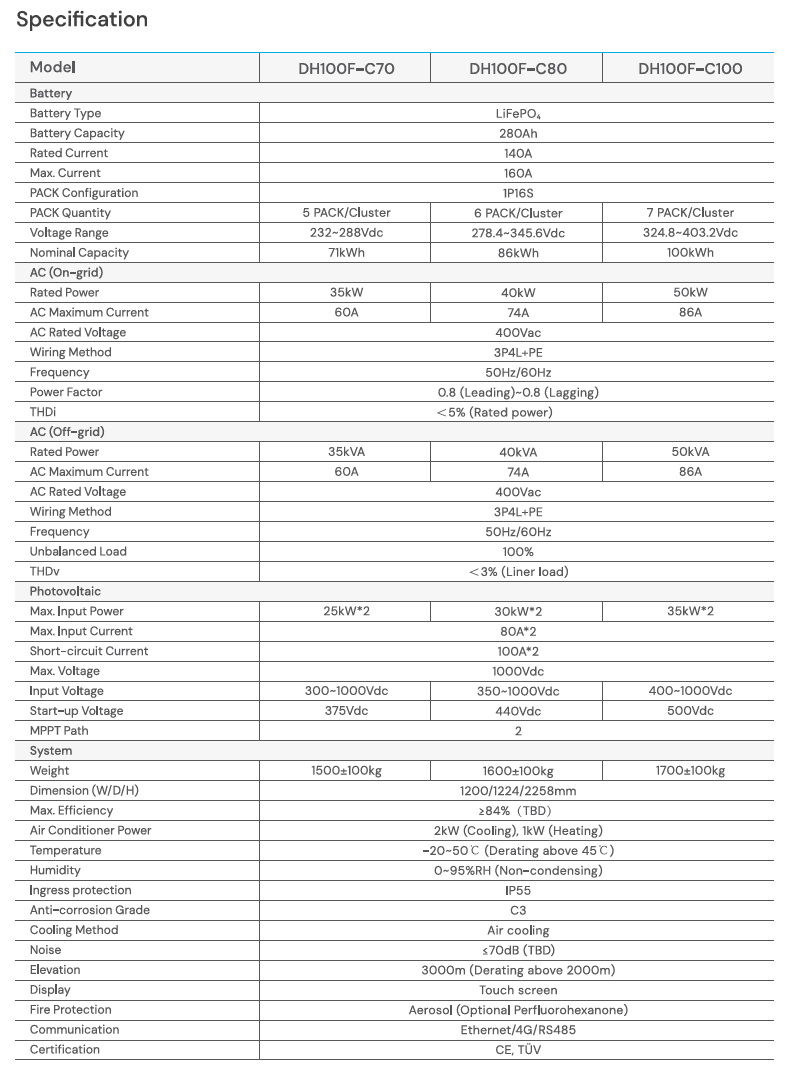 | Capaciteit | 100 kWh (DH100F-C100) |