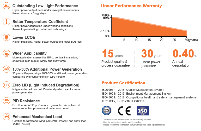 Geschikt voor residentieel & commercieel gebruik — door de combinatie van efficiëntie, betrouwbaarheid en goede low-light prestaties is het paneel inzetbaar op daken van huizen, bedrijven of grotere installaties.