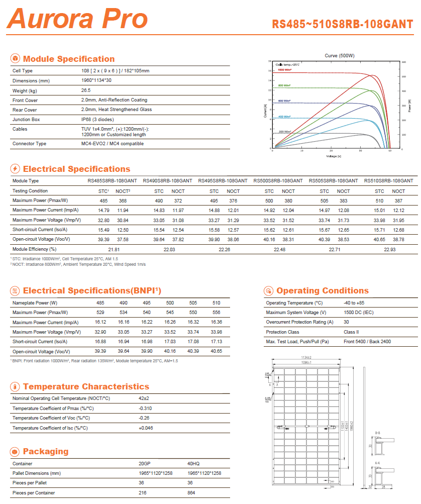 Runda Solar Aurora Pro S8R-96GANT 450Wp